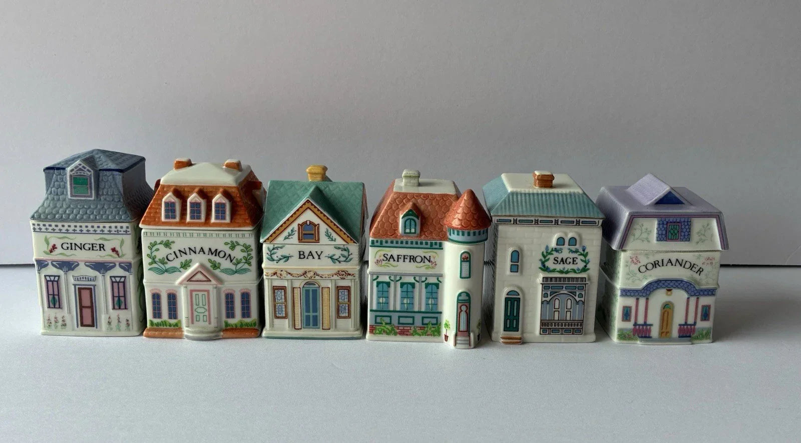 Vintage 1989 Lenox Spice Village Complete Set of 24 Houses No Rack. These are brand new and have never been used. The original paper sticker is intact on every jar.