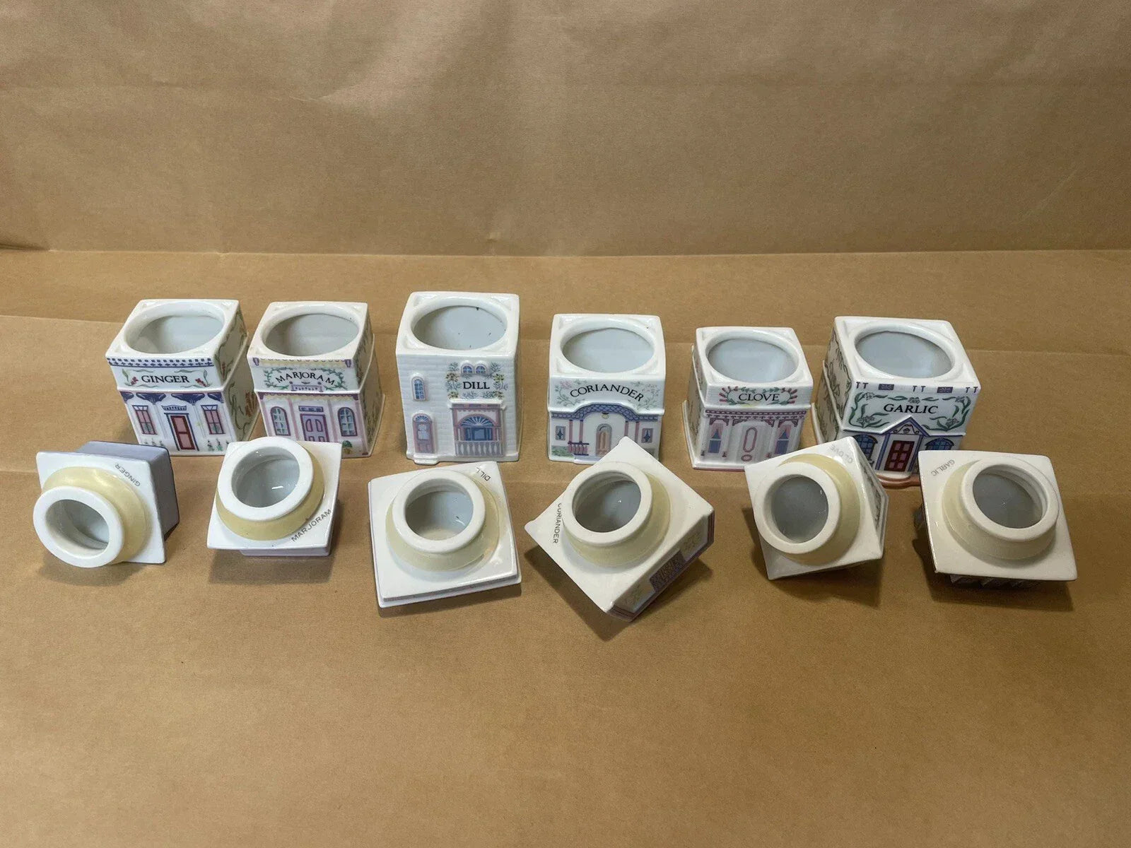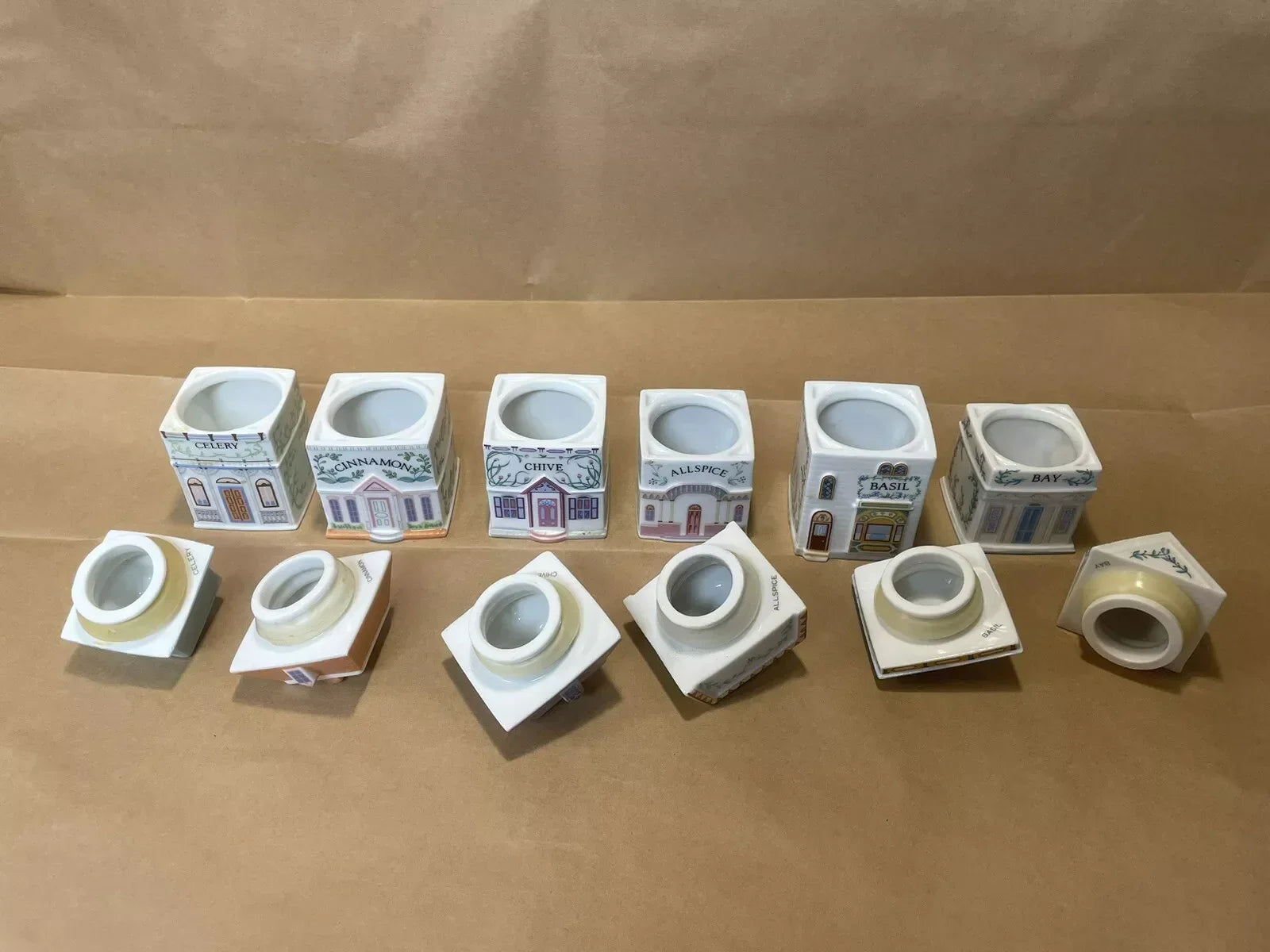 Vintage Porcelain Lenox Complete Spice Village & Rack,24 Spice CottagesVGC, 1989
