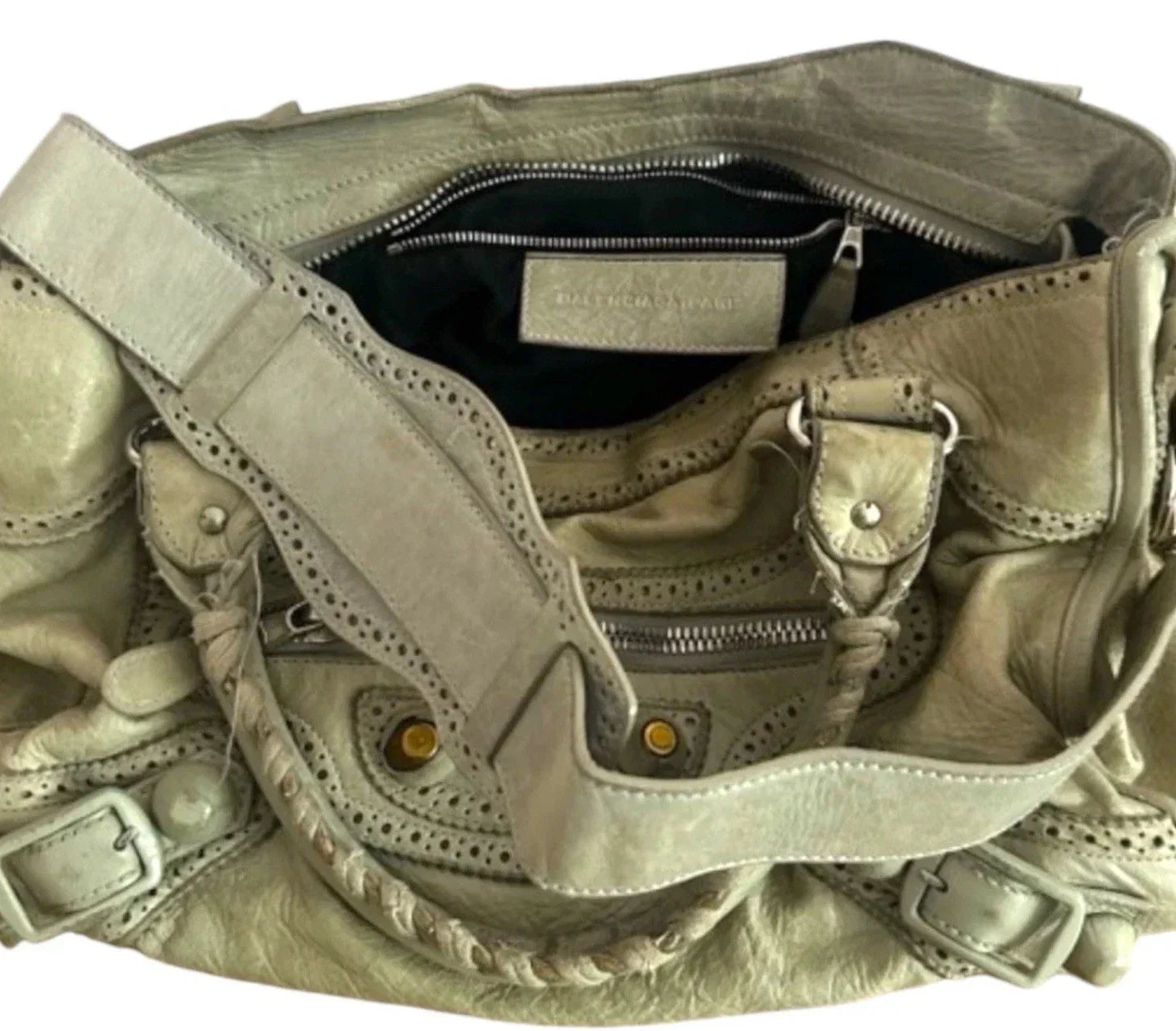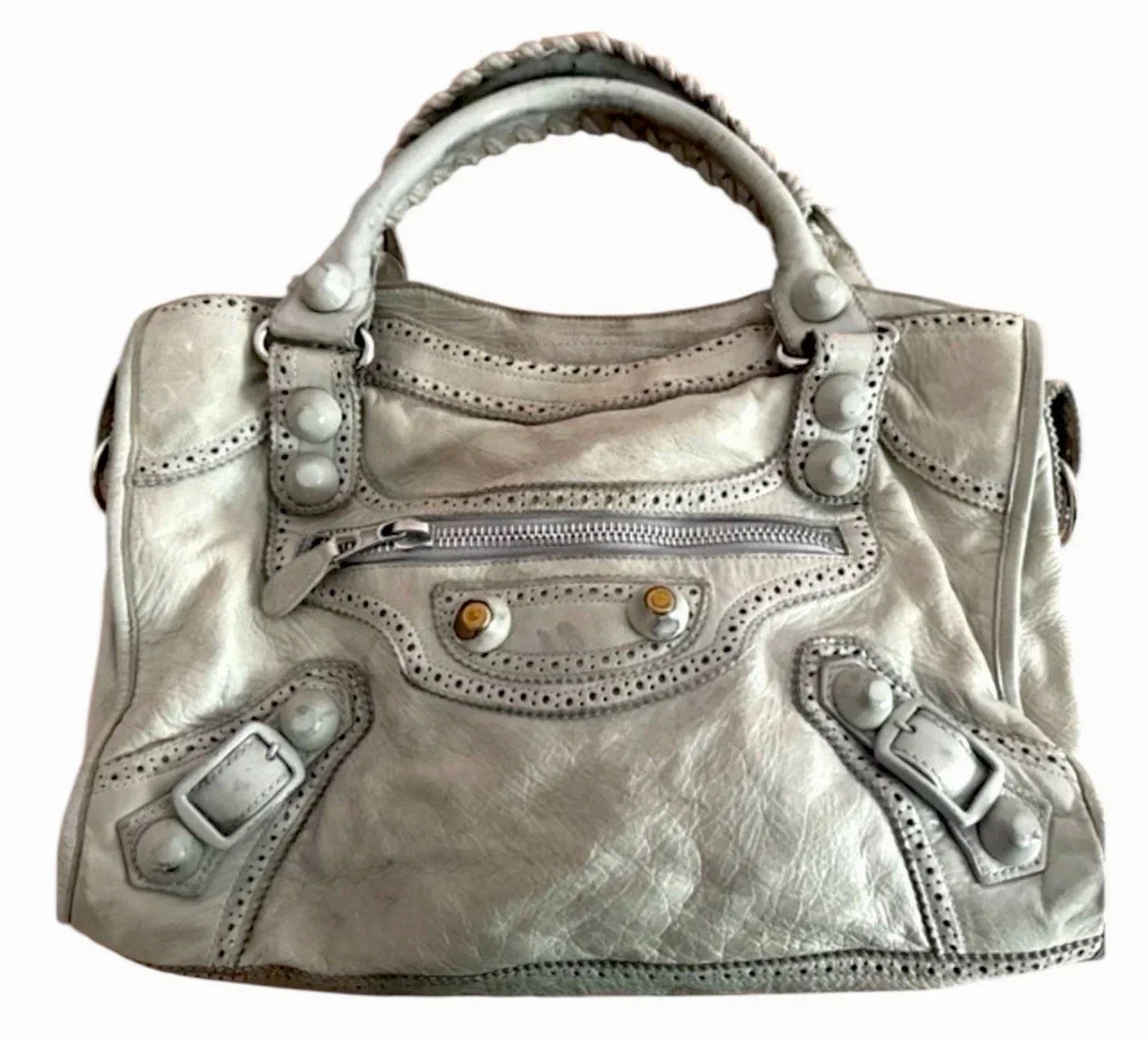 Vintage Real Balenciaga City Bag Lambskin White Leather Handbag Big Hardware
